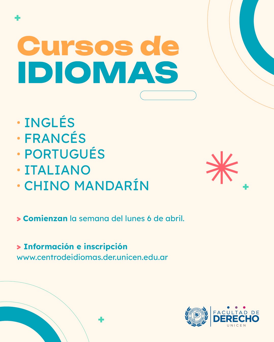 Información sobre cada curso, días, horarios, inscripción y aranceles ingresa en centrodeidiomas.der.unicen.edu.ar