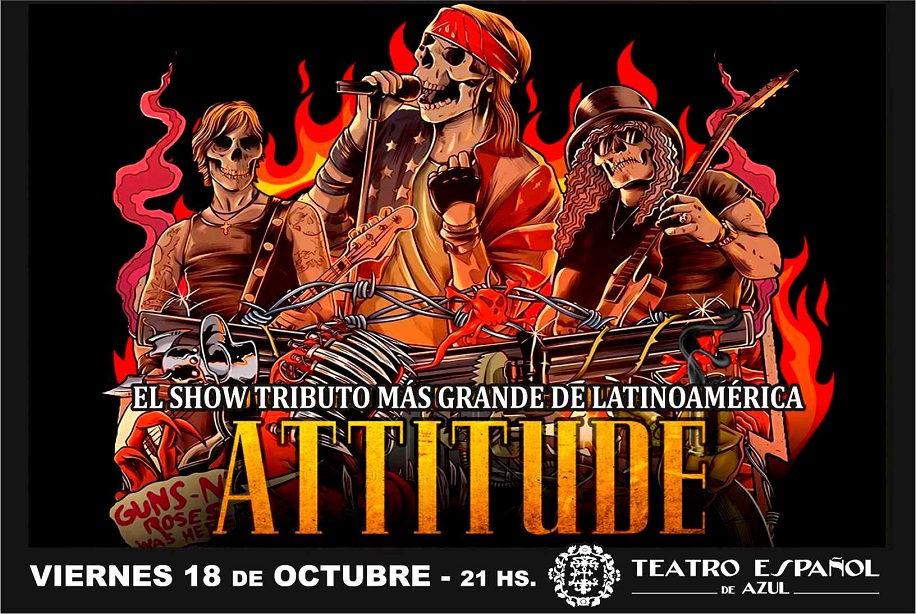 Attitude presenta el mejor tributo a los Guns N’ Roses el viernes 18 de octubre a las 21 hs. en el Teatro Español de Azul con la organización de la Fundación del Teatro Español y auspiciado por la Asociación Española.