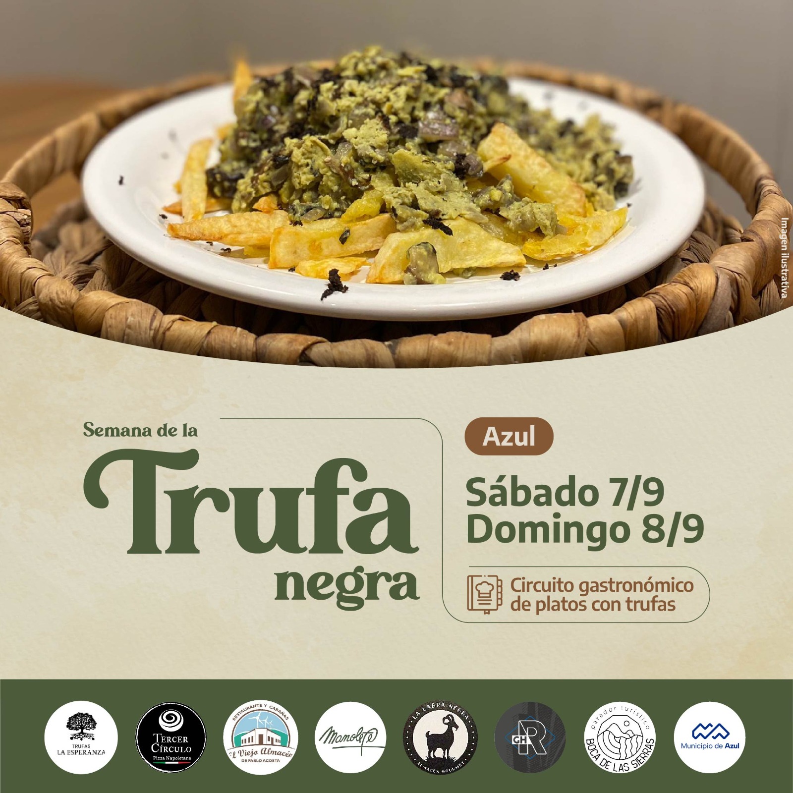Al respecto, la Confitería y Restaurante Manolete, La cabra negra, la Confitería Gran Hotel Azul, el Parador Turístico Boca de las Sierras y El Viejo Almacén de Pablo Acosta ofrecerán diversas propuestas. Cabe destacar que además, tendrán una opción común que es un tostón con huevo revuelto trufado, con un valor de 8500 y que cada uno emplatará según su estilo particular. En tanto, se suma Tercer Círculo Pizza Napoletana, con pizzas con trufas.