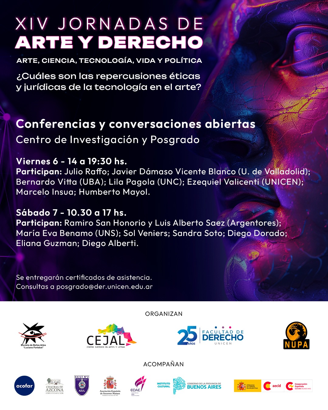 Bajo el lema «¿Cuáles son las repercusiones éticas y jurídicas de la tecnología en el arte?» se llevará a cabo el 6, 7 y 8 de septiembre la XVI edición de las jornadas.⁣