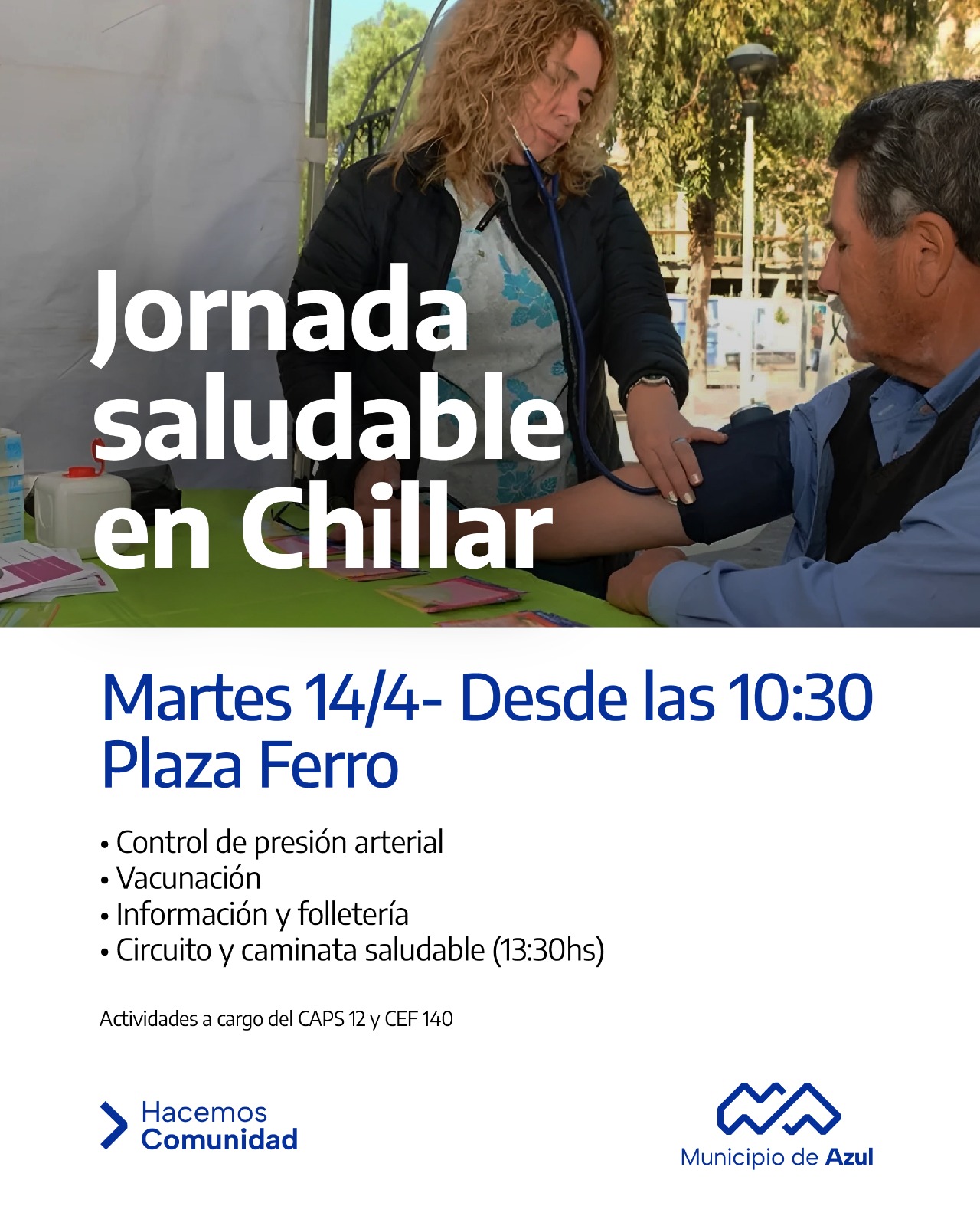 El Municipio de Azul informa que el martes 14, desde las 10:30, en la Plaza Ferro de Chillar se realizará una jornada saludable en el marco del Día Mundial de la Salud y de la Semana de la Educación Física. Cabe señalar que la primera de estas fechas se conmemoró ayer 7, mientras que la […]