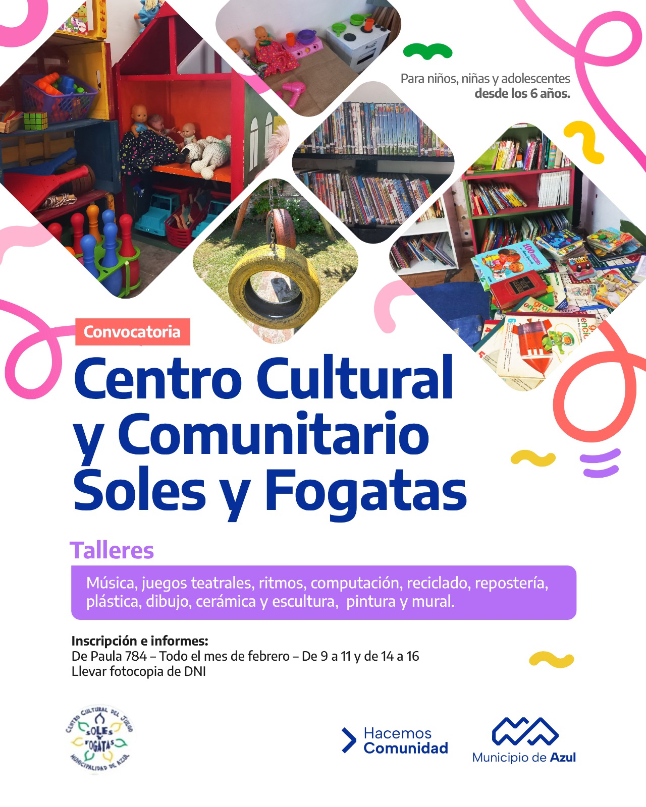 El Municipio de Azul informa que se encuentra abierta la inscripción para participar de los talleres que se brindan en el Centro Cultural y Comunitario Soles y Fogatas de forma gratuita.