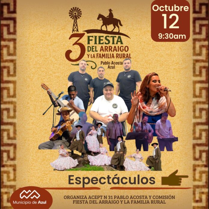 El Municipio de Azul recuerda que el próximo domingo 12 en el paraje Pablo Acosta, se realizará la 3° edición de la Fiesta del Arraigo y la Familia Rural.