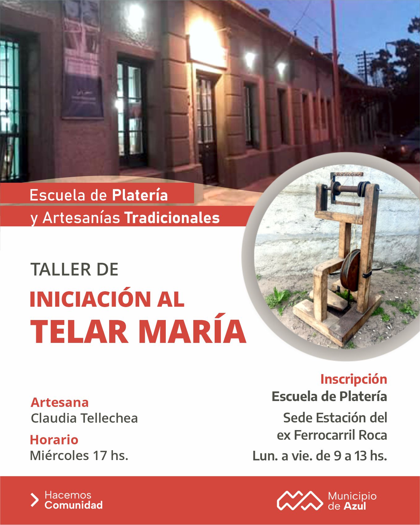El Municipio de Azul informa que se dictarán nuevos talleres en la Escuela de Platería. En esta oportunidad, se trata de los talleres de Iniciación al Telar María y de Hilado de Lana e Iniciación al uso de Rueca a cargo de la artesana Claudia Tellechea. El primero se dictará los miércoles a las 17 y el segundo, los jueves a las 14:30.