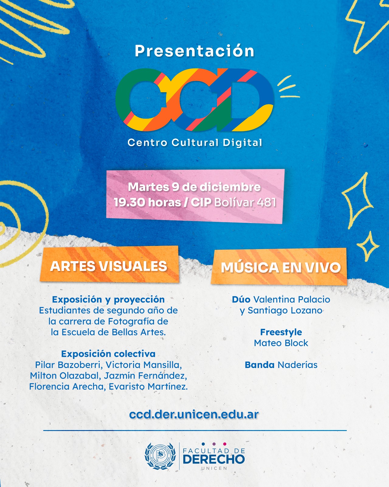 👉 La Facultad de Derecho UNICEN invita a la comunidad a la presentación del Centro Cultural Digital, un espacio pensado para promover, alojar y difundir la cultura emergente de Azul, Olavarría y Tandil.⁣