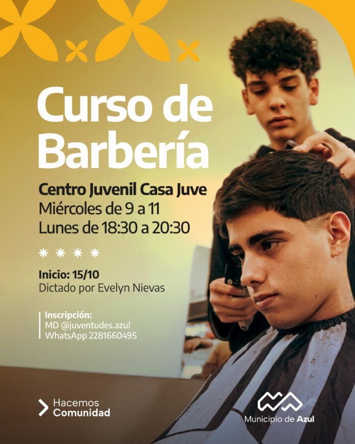 El Municipio de Azul informa que se encuentra abierta la inscripción para participar del curso de barbería impulsado por la Dirección de Políticas Juveniles.