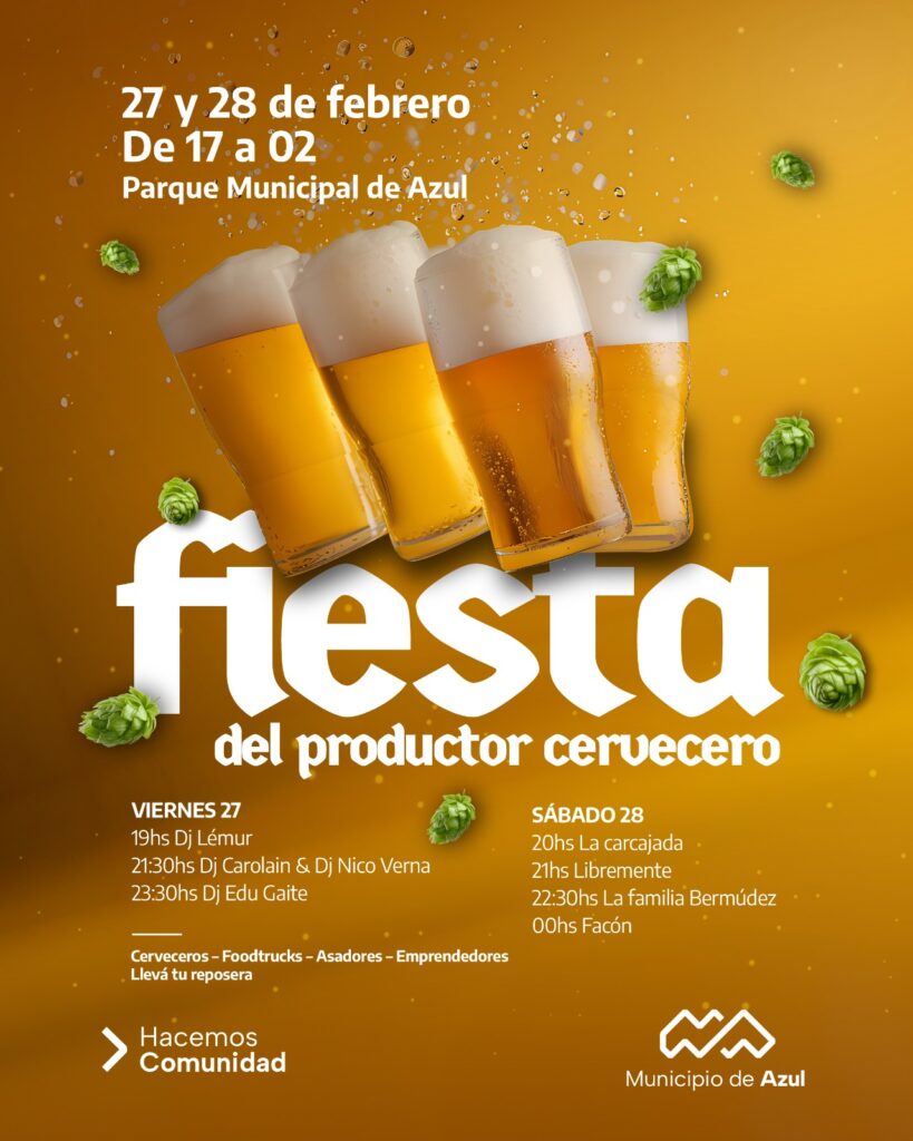 El Municipio de Azul invita a la comunidad a participar de la Fiesta del Productor Cervecero que se realizará el viernes 27 y sábado 28, en el Parque Municipal.