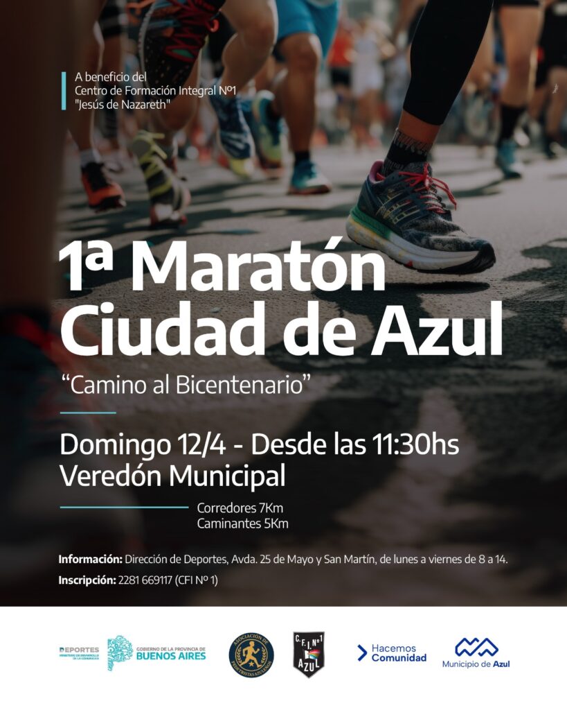 El Municipio de Azul informa que el domingo 12 de abril se realizará la maratón Ciudad de Azul “Camino al Bicentenario”.