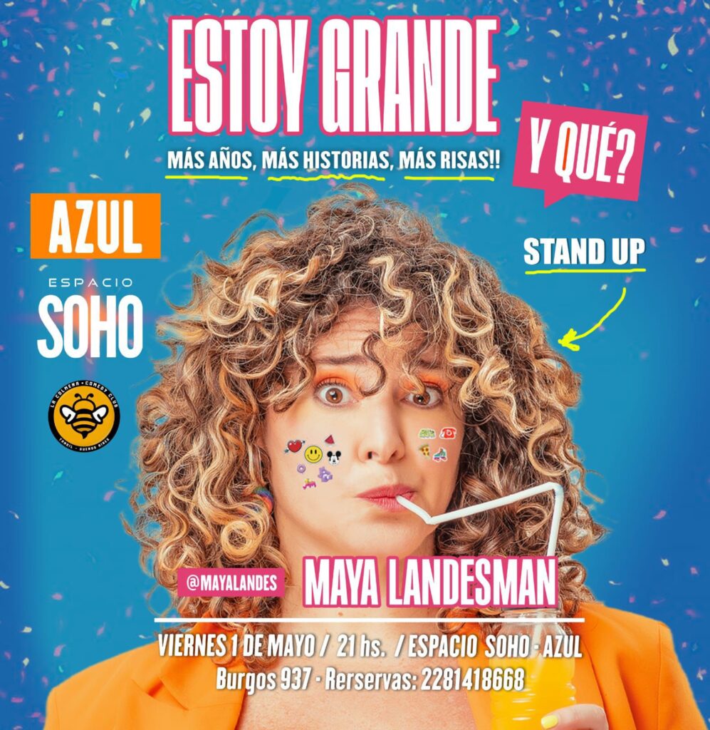 La reconocida comediante Maya Landésman llega a la ciudad de Azul con su nuevo espectáculo de stand up titulado “Estoy Grande”, una propuesta cargada de humor, ironía y observaciones sobre el paso del tiempo, las experiencias acumuladas y las pequeñas grandes contradicciones de la vida adulta.