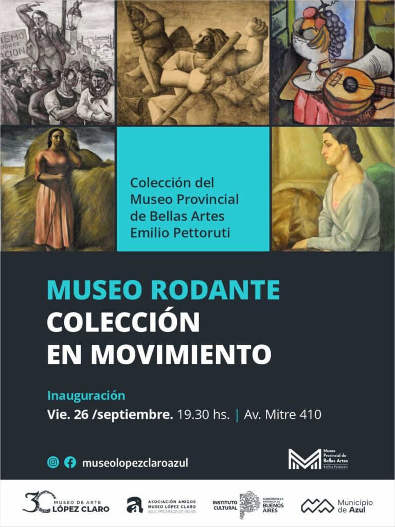 El Municipio de Azul invita a la comunidad a participar de la inauguración de la muestra “Museo Rodante – Colección en Movimiento”, que se realizará este viernes 26 a las 19:30 en el Museo López Claro (Avda. Mitre 410), en el marco de los 30 años de la institución municipal de arte.