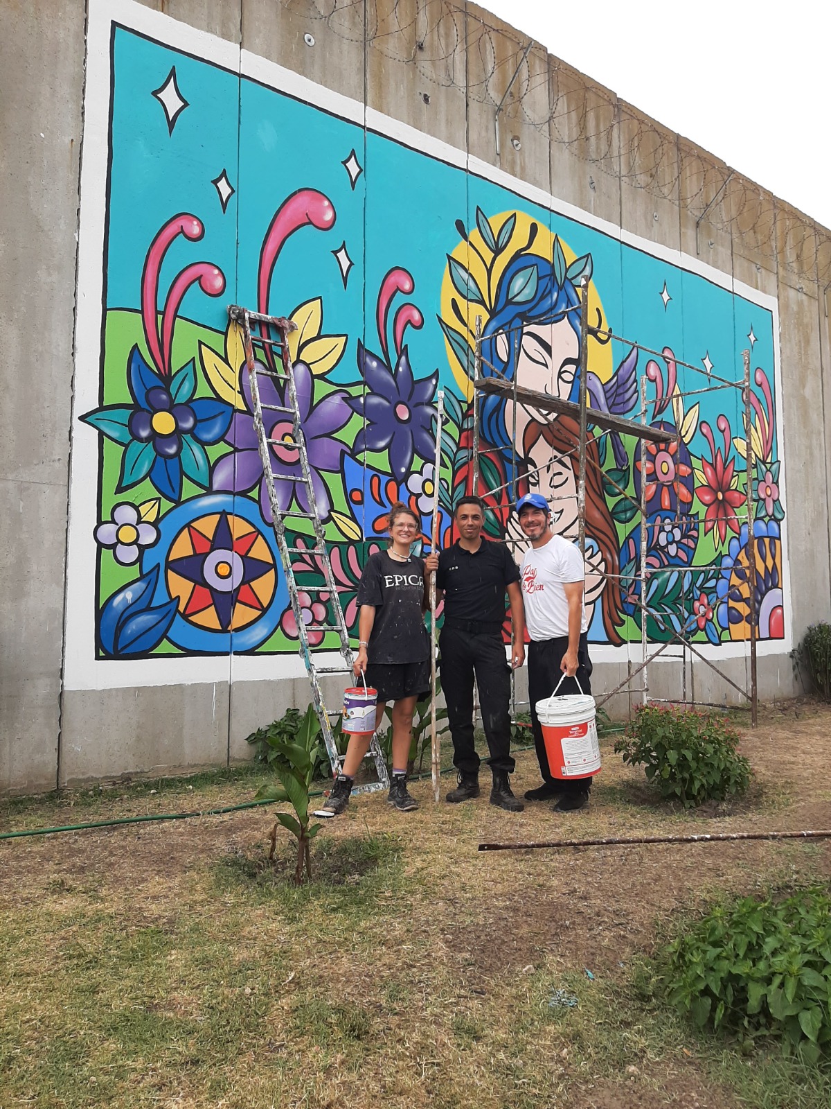 Ezequiel Trueba trabaja desde el año 2019 en el penal, primeramente trabajando como encargado de pabellón y luego como guardia de seguridad. Hoy es auxiliar de Cultura y Educación, tallerista del Programa Pabellones Literarios para la Libertad y Coordinador del Comité de Prevención y Resolución de Conflictos. Desde su visión, el mural aporta expresión, en las enormes paredes grises donde habitan las mujeres. El diseño refleja sus historias, sus sueños y esperanza de una realidad mas colorida. Ellas muestran a través de esta acción, que su identidad no se reduce a la condena penal y tampoco a la que parte desde la sociedad. Fue justamente esta creación conjunto al padre Andrés y a CEB, que se reforzo la idea de comunidad, de trabajo en equipo y de unión.