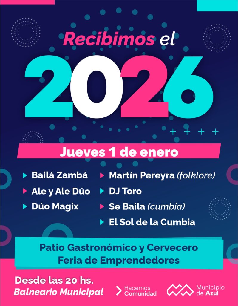 El Municipio de Azul invita a la comunidad, este jueves 1 de enero, a partir de las 20, al clásico festejo para recibir el año nuevo 2026 en el Balneario Municipal.