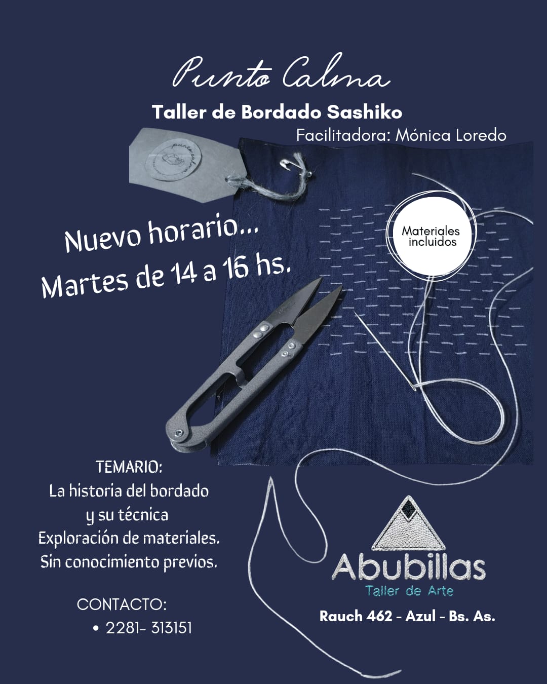 El espacio Abubillas Taller de Arte suma una nueva propuesta formativa en la ciudad de Azul con el Taller de Bordado Sashiko “Punto Calma”, a cargo de la facilitadora Mónica Loredo.